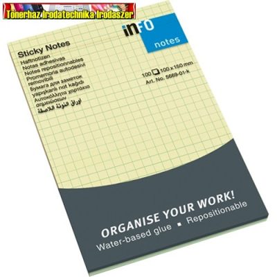 Öntapadós jegyzettömb Info Notes 100x150 mm 100 lapos sárga kockás 5669-01-K