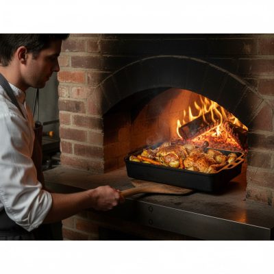 A 47×29×7,5 cm-es öntöttvas tepsi kifejezetten nagy hőfokon történő sütéshez készült. A kemencében, sütőben vagy akár nyílt hőforrás közelében is megbízhatóan teljesít, miközben az öntöttvas anyag gondoskodik az egyenletes sütési eredményről.