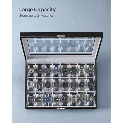 • [Nagy kapacitás] A 24 nyílással büszkélkedő óradoboz rengeteg tárhelyet kínál óráinak, akár 48 mm-es kijelzővel.