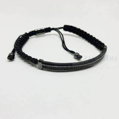 Órakísérő csomózott karkötő fekete acél betét díszítéssel.