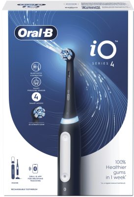 Az iO 4 elektromos fogkefe az Oral-B legkiválóbb technológiáját alkalmazza, amely ötvözi a fogászati eszközök ihlette kerek fogkefefejet és a gyengéd mikrovibrációt kibocsájtó sörtéket, a professzionális tisztaság érzéséért otthonában is. Az okos nyomásérzékelő segít megelőzni a túl erősen vagy túl gyengén végzett fogmosást a fogíny védelme érdekében. A fogínyvédő technológia figyelmezteti Önt, ha túl nagy nyomással végzi a fogmosást. A legjobb eredmény érdekében 3 havonta cserélje le az Oral-B iO fogkefefejet.