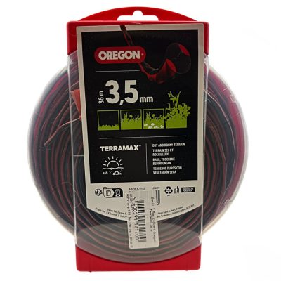Az Oregon® TerraMax™ csavart profilú fűkasza damil egy kiváló minőségű, ∅ 3.5 mm átmérőjű damil, mely ⇔ 36 méter hosszú, speciális bliszteres csomagolásban- áztatószivaccsal.