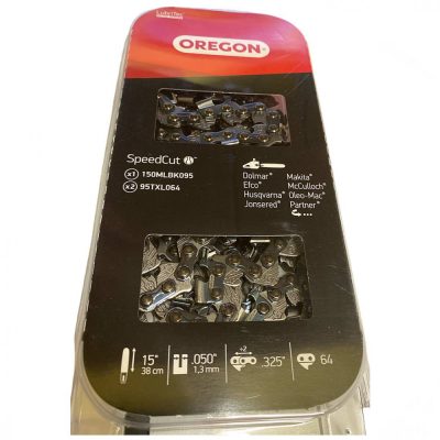• 2 db Oregon® SpeedCut™ Lánc (91TXL064): Ez a továbbfejlesztett lánctípus a SpeedCut™ széria része, mely karcsú vágási szélességével akár 20%-kal gyorsabb vágást eredményez, mint a hagyományos láncok.