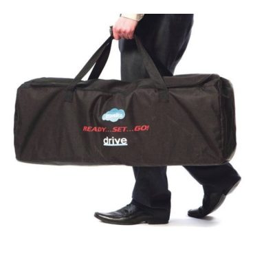 A mellékelt hordtáska két beépített kerekével lehetővé teszi a kerekesszék gurítását, ami csökkenti a fizikai terhelést a szállítás során. Ez a funkció különösen hasznos, ha repülővel, vonattal vagy autóval utazik, mivel a szék mozgatható, mint egy bőrönd.