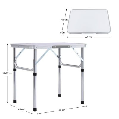 Összecsukható kempingasztal, 60 cm, alumínium/MDF, KEPI TYP 2
