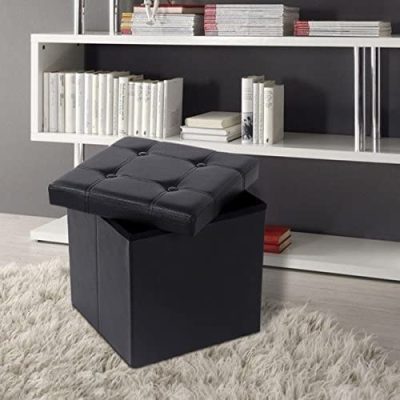 Összecsukható puff, tároló pad, fekete, 38x38x38 cm |