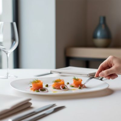 Kiváló például egy füstölt lazac előétel tálalásához, ahol a hosszúkás forma támogatja az elrendezést és kiemeli az alapanyagokat.
