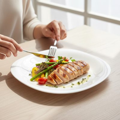 A 24 cm-es méret tökéletes például egy grillezett csirkemell zöldségekkel való tálalásához, ahol a kompozíció és a tiszta elrendezés kulcsszerepet kap.