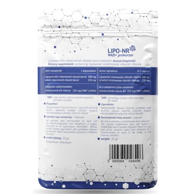 Megfelelő életvitel mellett NAD+ prekurzor molekulákkal is képesek vagyunk támogatni a megfelelő mitokondriális működést, a normál sejtenergia szint fenntartását, az öregedési folyamatok gátlását (a DNS hibák javítására szakosodott speciális fehérjék aktivációja révén). Az általunk létrehozott termék a LIPO-NR egy igen hatékony NAD+ prekurzor hatóanyagot tartalmaz: NR, azaz nikotinamid-ribozid-ot. Az NR liposzómális burokba ágyazva a piacon kapható NR termékeknél jobb biológiai hasznosulást mutat.