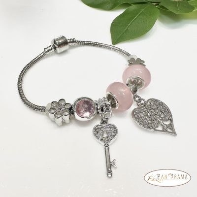 Pandorka karkötő. Ezüstözött, nikkel mentes fém karkötő, ezüstözött charmokkal. Erős zárral rendelkezik, ez lehetővé teszi a charmok variálását is. Rendkívül jó minőségű, fiataloknak születésnap, névnap alkalmára ajándékozásra is kiváló.
