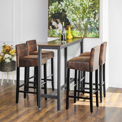 Párnázott alsó háttámlájú bárszékek PU Ülésmagasság 76 cm Tömör fa lábak lábtartóval Barna és fekete: