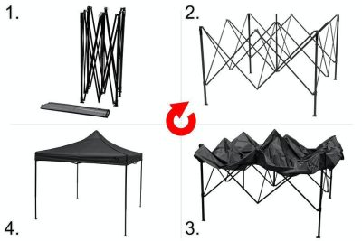 Összecsukható partisátor 3 x 3 m méretben, 2 m átjárási magassággal.