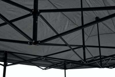 A sátor erős acél szerkezettel készült, amely gyors és egyszerű összeállítást tesz lehetővé. A sátor lábai rugós rögzítőmechanizmussal vannak ellátva, amely biztosítja a stabil és biztonságos magasságállítást.