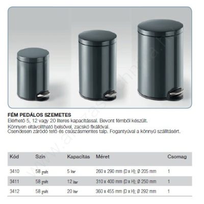 • Pedálos szemetes 12 Literes - porfestett fém (3411-58)