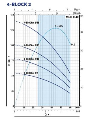 Az új Pedrollo 4BLOCKm 2/13 egy rozsdamentes acélból készült, többfokozatú, merülőmotoros csőbúvár szivattyú, amely integrált kondenzátorral és termikus védelemmel rendelkezik. A Pedrollo által szabadalmaztatott, teljesen független, lebegő járókerékkel ellátott hidraulika jelentősen csökkenti a homok okozta kopást, így a szivattyú hatékonyan működik akár 200 g/m3 homoktartalom mellett is. A hidraulika rendszer minimális hatékonysági indexe (MEI) messze meghaladja az ErP követelményeket, biztosítva ezzel a kiemelkedő és hatékony villamos teljesítményt. A szivattyú gyárilag 20 méteres elektromos kábellel van felszerelve.