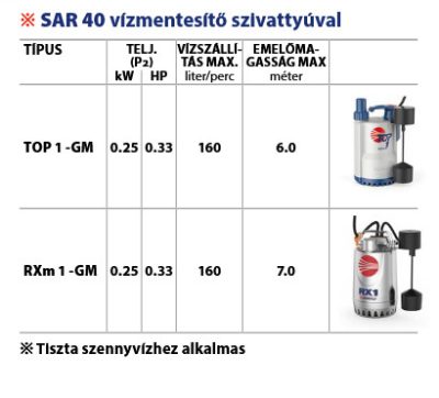 • PEDROLLO SAR 40-TOP 3 Vízgyűjtő és átemelő állomás