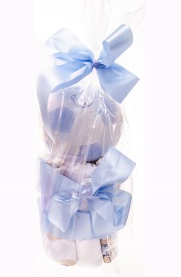 Pelenkatorta: 7db fehér,2db mintás textil pelenka plüss labdával