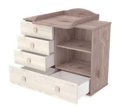 Pelenkázó szekrény 4 fiókkal és polccal szürkésbarna színben