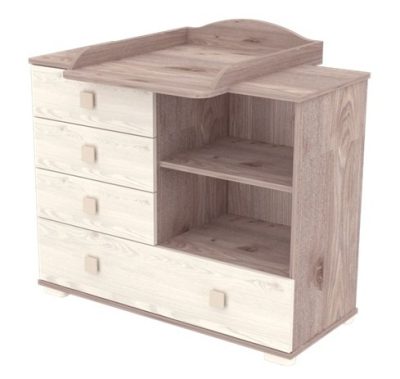 Pelenkázó szekrény 4 fiókkal és polccal szürkésbarna színben