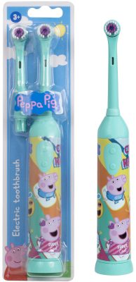 A „Peppa Malac” című népszerű animációs gyereksorozat ihlette fogkefe. A csomag két fogkefefejet tartalmaz. Ez kényelmes lehet többgyermekes háztartásokban vagy tartalék fogkefeként.