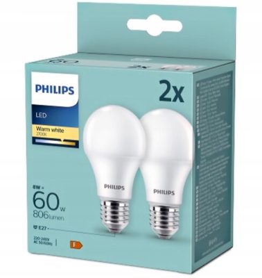 • Philips E27 LED 8W 806lm 2700K melegfehér 180° - 60W LED izzó (2 db-os csomag)