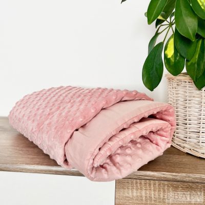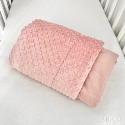 Phoebe – Puha babatakaró 70×90 cm | Púder rózsaszín pamutvászon és buborékos minky, antiallergén töltettel
