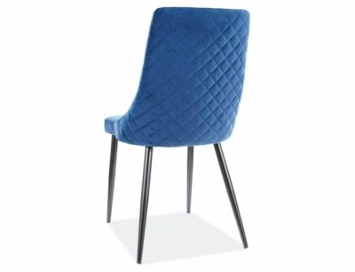 A Piano B bársony étkezőszék a modern design és a kényelem tökéletes ötvözete. A tengerészkék bársony kárpitozás puha tapintást és luxus megjelenést kölcsönöz, míg a fekete matt fém lábak stabil alapot biztosítanak. A háttámla különleges, rombusz mintás steppelése egyedi karaktert ad a széknek. A karcsú, ergonomikus kialakítás tökéletesen illeszkedik bármilyen étkezőbe vagy dolgozószobába.