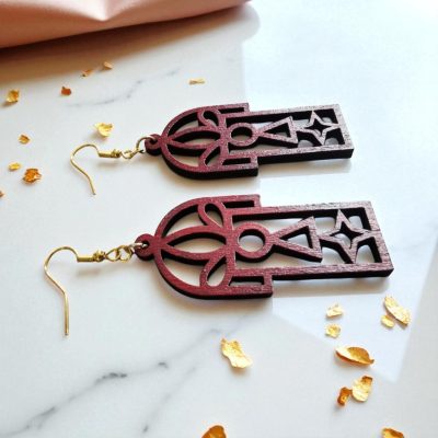 Lézervágással készült könnyű és természetes fülbevaló, amely kényelmes viselet a mindennapokban.Mérete: 25x54x3 mm