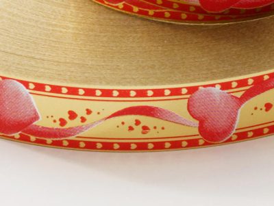 • Piros szív arany csíkkal szalag 19 mm széles