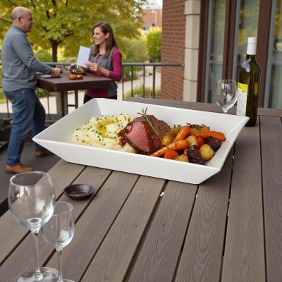 A Plain mély téglalap tányér letisztult alapdarab, amely nem vonja el a figyelmet az ételről, mégis karakteres megjelenést ad. Jól illeszkedik modern és klasszikus terítékhez egyaránt.