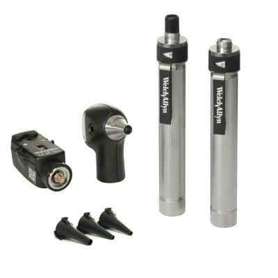 A PocketScope™ halogén diagnosztikai készlet egy 2,5 V-os halogén otoszkópból és szemészeti készletből áll