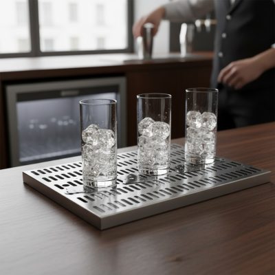 A rozsdamentes acél pohárcsepegtető tálca ideális kiegészítő bárpultokhoz, kávézókba és vendéglátóipari konyhákba. A 30×20×3 cm-es méret kompakt, mégis hatékony megoldást nyújt a mosott poharak lecsepegtetésére és ideiglenes tárolására.