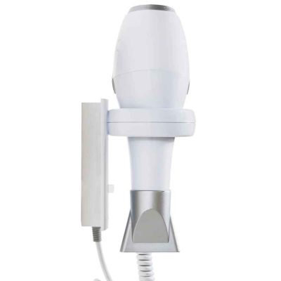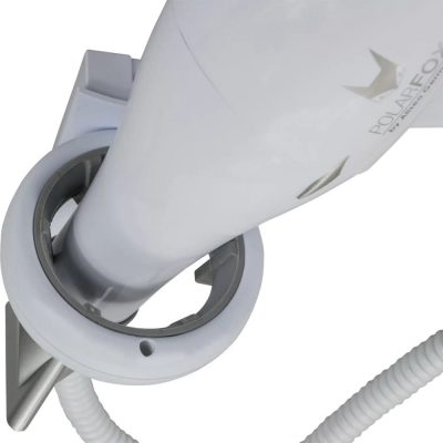 Polarfox hotel hajszárító, beledugós fali konzollal, króm-fehér burkolat, ionzáló technológiával, 3 hőmérséklet állítás, hideg levegő fújás, 60cm hosszú kábel, hordozó zsákkal. 1875W teljesítmény, 72 dB hangerősség.