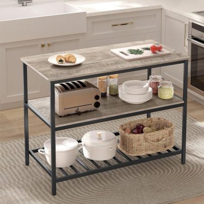 • [3 szintes tárolás] Helyezzen egy virágvázát vagy teáskészletet a felső polcra, a konyhai berendezéseket a középső polcra, és a sütőedényekkel ellátott tárolódobozokat az alsó polcon – minden elrendezve ezen a 3 szintes konyhai állványon