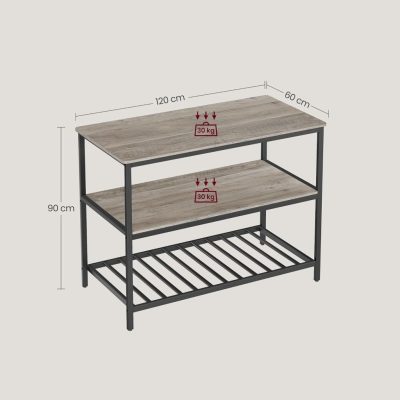 konyhai polc nagy munkalappal, 3 szintes mikrohullámú sütő polc, acél váz, 60 x 120 x 90 cm, ipari, könnyen összeszerelhető, szürke-fekete: