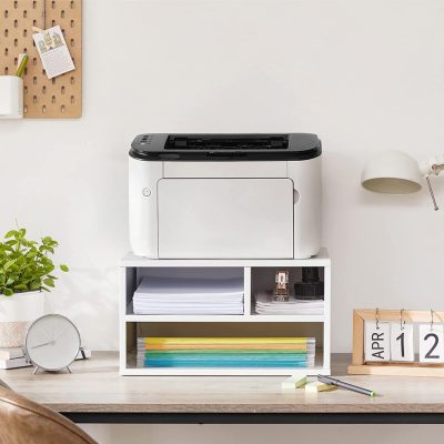 • Hely növelése: A terjedelmes nyomtató túl sok helyet foglal az asztalon. Emelje fel ezzel a kis tárolóval, amely lehetővé teszi az irodai kellékek tárolását is. Hú, az irodája máris nagyobbnak tűnik!