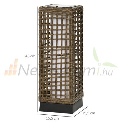 • Polirattan napelemes kerti lámpa 46 cm magas kültéri szolár világítás állólámpa 8 órás világítási idővel