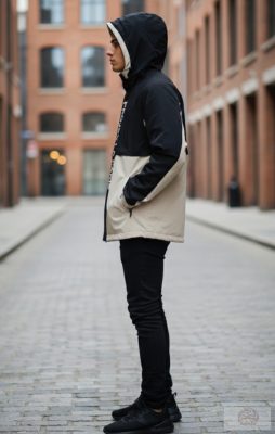 Állítható kapucni húzózsinórral a szél elleni védelemért.