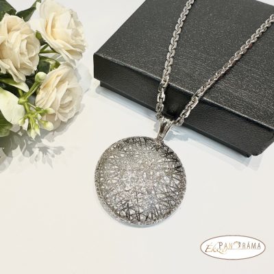 Mérete : nyaklánc 69 cm hosszú, 3.5 mm széles, a medál mérete 55x40 mm.