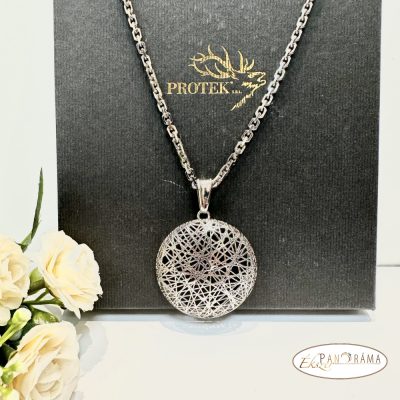 White gold színű Protek hosszú nyaklánc különleges medállal