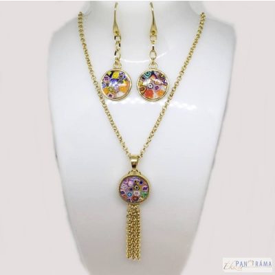 Sárga arany színű, különleges , muránói üveggel díszített, lógós fülbevaló. Szettben is kapható! Plüss tasakban szállítjuk.Ajándéknak is tökéletes darab.