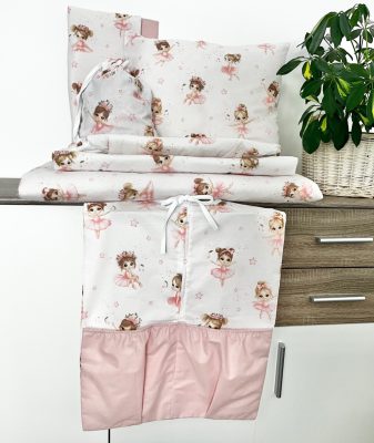 PúderTánc – 2 részes egybevarrt ovis ágynemű (90×140 / 40×50 cm) balerina mintával és púder egyszínű hátoldallal