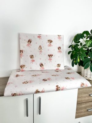 • PúderTánc – 2 részes egybevarrt ovis ágynemű (90×140 / 40×50 cm) balerina mintával és púder egyszínű hátoldallal