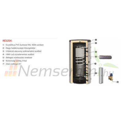 Az inox hőcserélőt a tartályban lévő meleg víz melegíti fel.