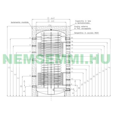Puffer tartály 1 inox és 1 acél hőcserélővel 2000 literes hőszigetelt tároló. Az inox cső a használati melegvíz felmelegítésére szolgál