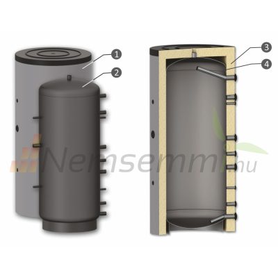Puffer tartály - hőcserélő nélküli 300 literes tartály melegvíz tárolás céljára. Sunsystem P 300