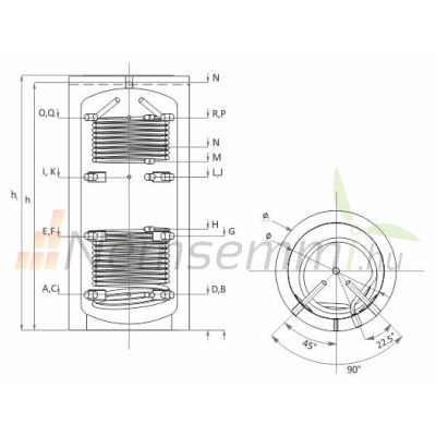 Puffertartály 2 hőcserélővel, 90 fokkal elforgatott bekötési pontokkal, ezáltal sarokba is egyszerűen behelyezhető, ott is könnyen hozzáférhetők a csatlakozók.