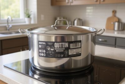 A Quttin Hotel magas lábas fedővel 25 literes egy 40 cm átmérőjű, magas falú, 18/10-es rozsdamentes acél edény, amely hatalmas mennyiségek elkészítésére készült. A 0,8 mm falvastagság hosszú távú strapabíróságot és kiváló hővezetést garantál, míg a vastag szendvics alj egyenletes hőeloszlást biztosít minden főzési felületen – beleértve az indukciót is.
