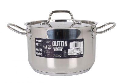 A Quttin Hotel magas lábas fedővel 4 literes egy 20 cm átmérőjű, magas falú, 18/10-es rozsdamentes acél edény, amely kisebb adag ételek elkészítésére ideális. A 0,8 mm falvastagság hosszú élettartamot és kiváló hővezetést garantál, a vastag szendvics alj pedig egyenletes hőeloszlást biztosít minden tűzhelyen, beleértve az indukciót is.