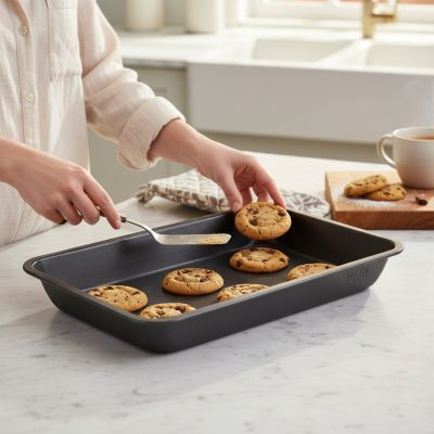 A Quttin Xynflon bevonatú sütőtepsi a mindennapi sütések megmentője: a Xynflon tapadásmentes felület miatt könnyebben dolgozhatsz, kevesebb zsiradék kell, és a kész étel szépen, sérülés nélkül emelhető ki.